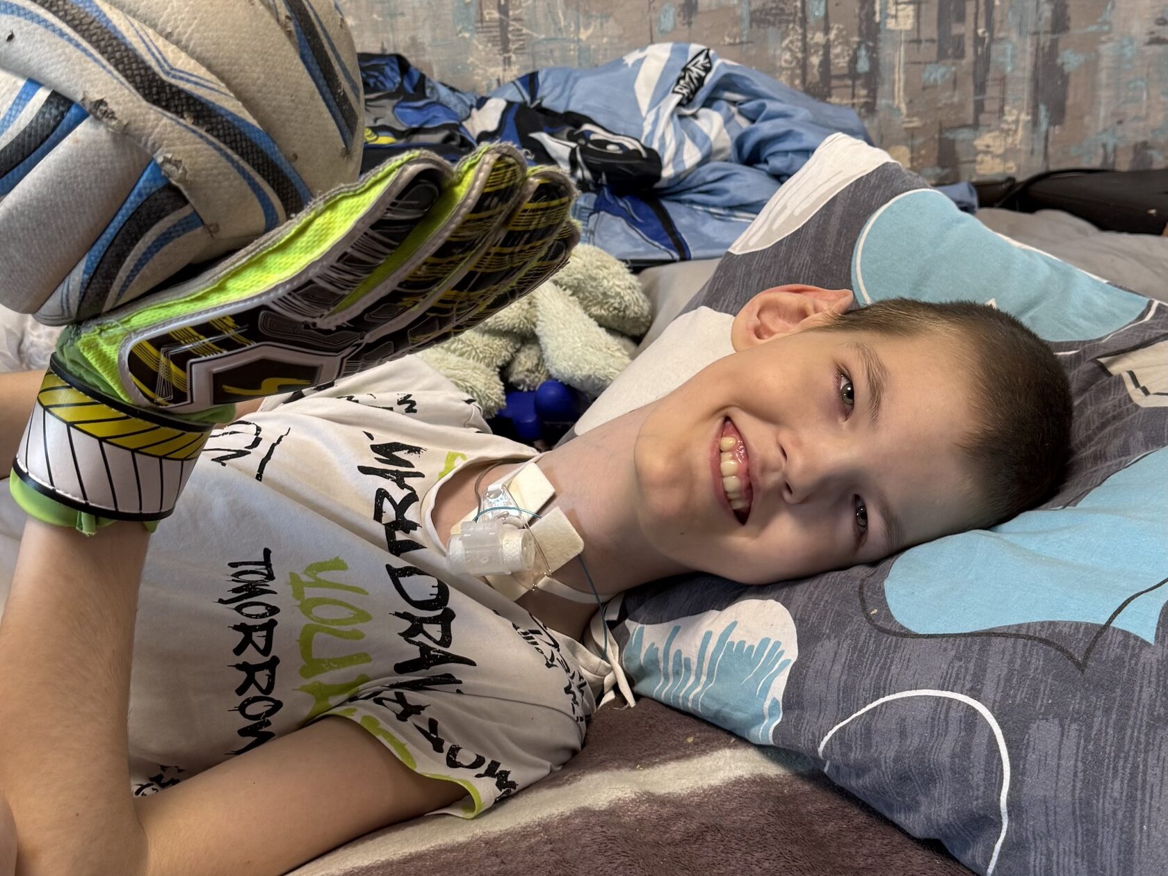 Андрей — настоящий фанат футбола. С самого детства он мечтал стать футболистом и вместе с папой ходил на стадион болеть за любимую команду — «Зенит». После того как ноги перестали слушаться, Андрей не перестал играть: он садился на пол, надевал вратарские перчатки и ловил мяч, повторяя, что всё равно будет вратарём. После сложной операции, когда ему установили трахеостому и гастростому, Андрей теперь проводит больше времени лёжа, но любовь к футболу осталась прежней. Он продолжает «играть» даже лежа, ловя мяч и представляя, как защищает ворота своей команды.